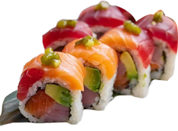 Tuna, salmon, avocado, Top with tuna, salmon and fresh wasabi.