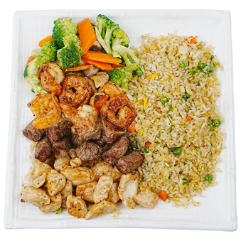 Chicken, Steak and Seafood,Served with White or Fried Rice and Vegetable